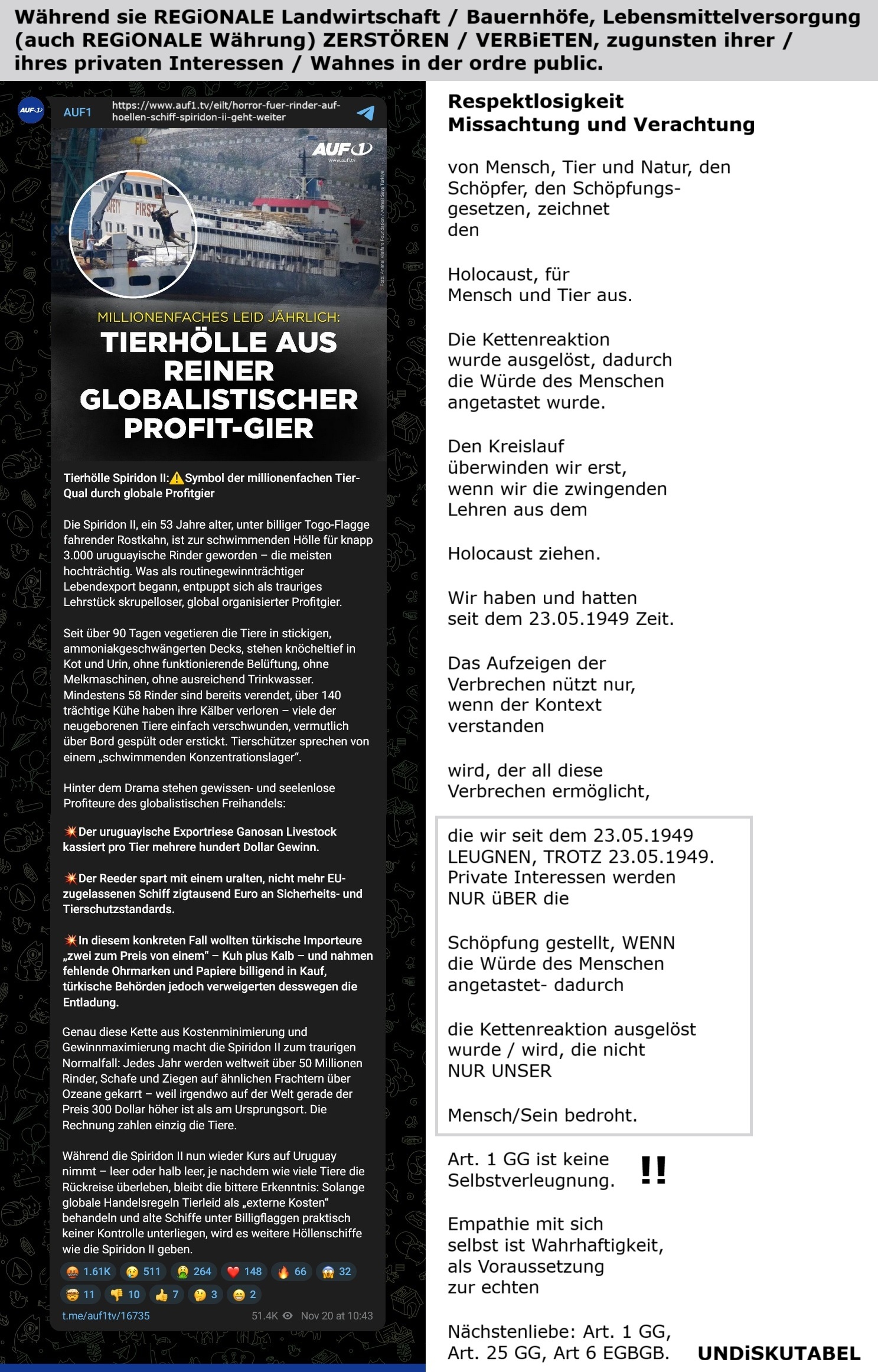 Verherrlichungen des Faschismus, des Holocaust, sind in der ordre