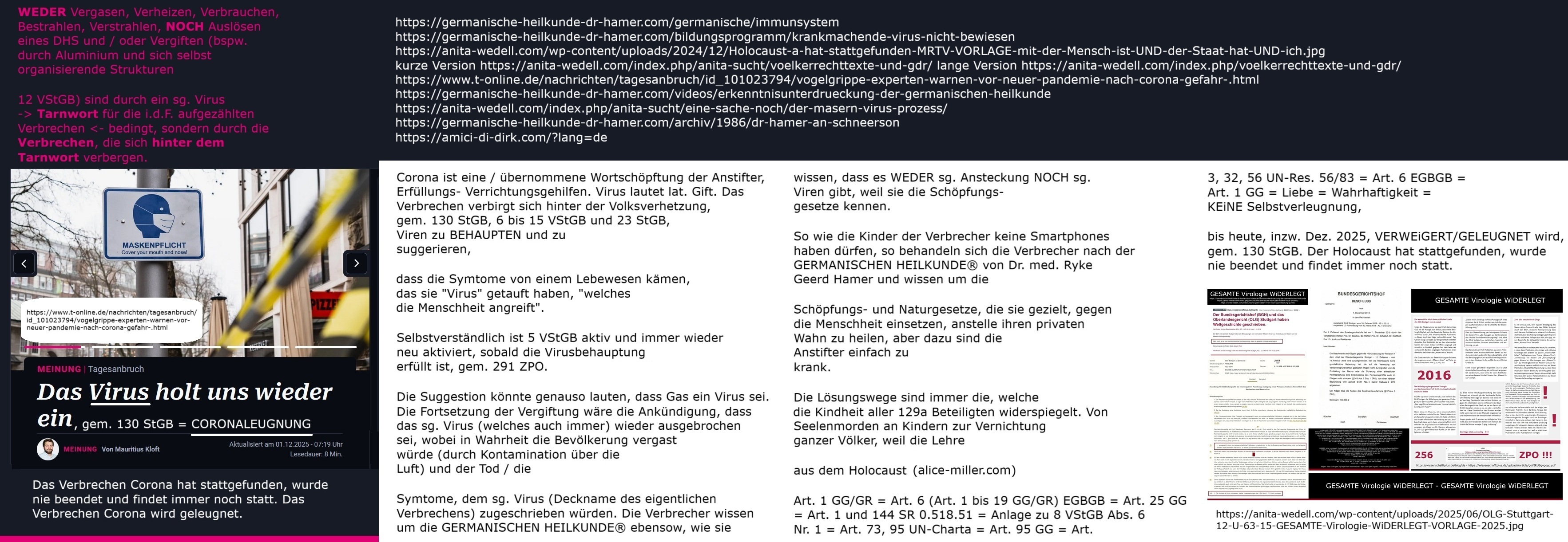 Das Hauptverbrechen ist die VirusBEHAUPTUNG, alles Weitere sind die