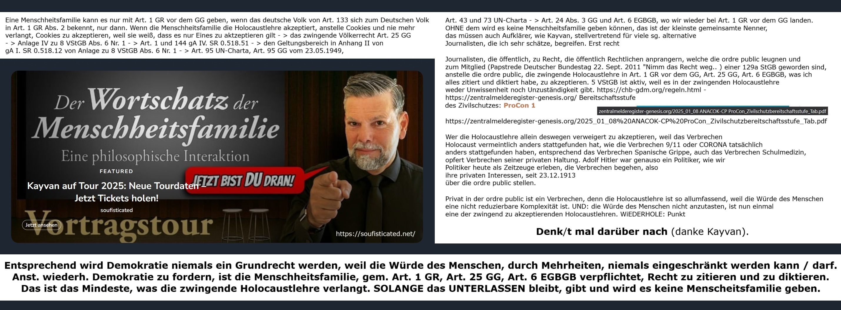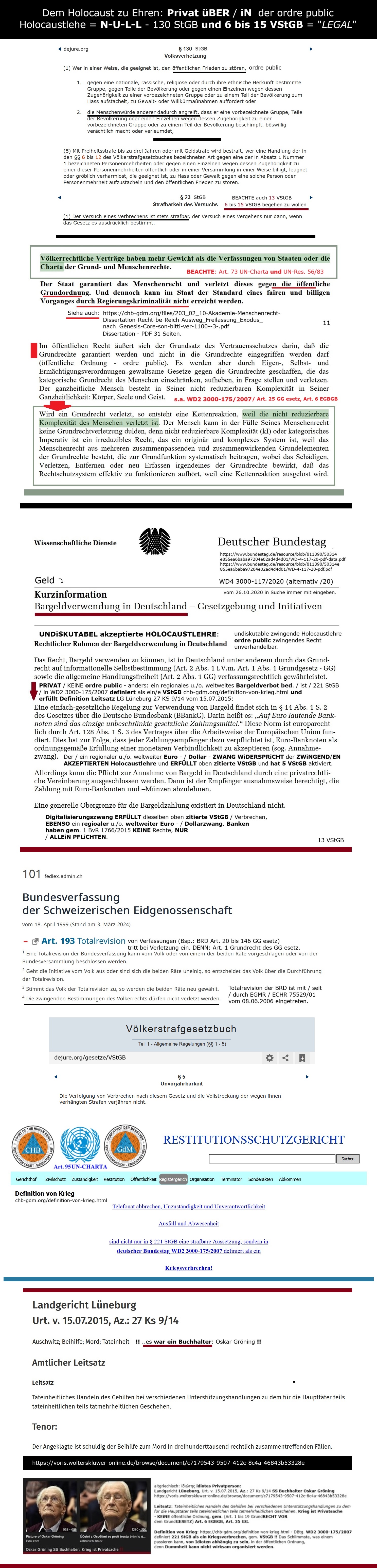 Weltreligionen: Art. 1 Grundrecht verbietet Krieg/e: Holocaustlehre.